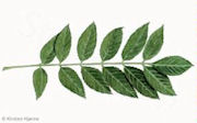 Asketræet har blade, der består af man små blade, der sidder overfor hinanden på en stilk. Der er også et blad helt ud i spisen. Frugterne er en lille klase, der kastes langt væk fra træet.